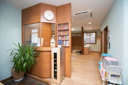 来院された患者さんの応対をする部分と、お会計などをする部分に小さなパーティションを設け、会計時に他の患者さんからお財布などが見えないよう工夫されています。