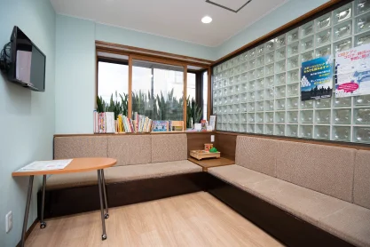 診療エリアと区切らず開放的な空間になっており、リラックスして待っていただけるように配慮しています。