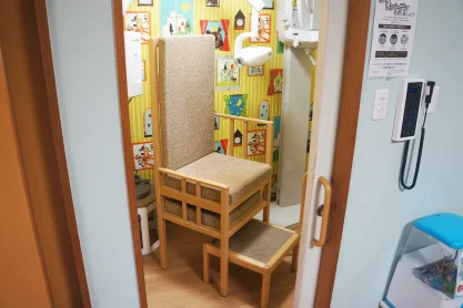 • 当院は1981年に小児歯科として開院しました。  小児歯科への取り組みとして、設備面では、子供さんが治療を受けやすいよう、体格によらず安定した同じ姿勢で治療可能な 水平の診療台 を採用しております。  また、小児歯科としての これまでのノウハウを生かし、歯科受診がはじめての3歳以上の子供さんを対象に、歯科に慣れてもらうためのトレーニングを用意しております。  痛み等の緊急性がある場合を除いて、初回は治療をせず児童心理を考慮したトレーニングを行うようにしております。(一度で慣れられない場合は数回かけてトレーニングする場合もあります。)