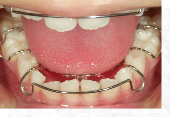 当院では主に7歳~9歳にスタートする歯列矯正をしています。 これは成人の歯列矯正とは違い、正確には咬合誘導といいます。近年では予防矯正と呼ばれることもあります。  歯並びの乱れはほとんどの場合、前歯の生え変わり時期から始まります。そして10歳ごろから、ガタついた前歯に合わせて奥歯が生え変わってしまい、さらに歯並びが悪化します。  そうなる前に、床装置( -しょうそうち- と読みます)と呼ばれる、入れ歯のように自身で取り外しが可能な装置とお口のトレーニングによって早期に治していきます。